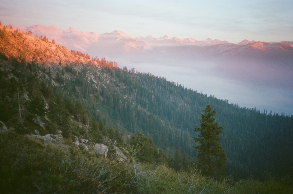 While I had told myself I would join Matt for the first few miles, I was too stubborn to head back to the car. The plan became that I would join him for Alta peak and reevaluate. I thought about how I had beaten Lyme, how tough that was too hike through, how I had pushed through multiple days of pouring rain on the AT and while hitchhiking across Canada. I can push through this cold and a night of no sleep I told myself and I did. We shed our packs and began to make progress up towards Alta Peak. At the top, we met a gentleman with a fishing pole, and took a much needed break, admiring the mountains and lakes thousands of feet below.