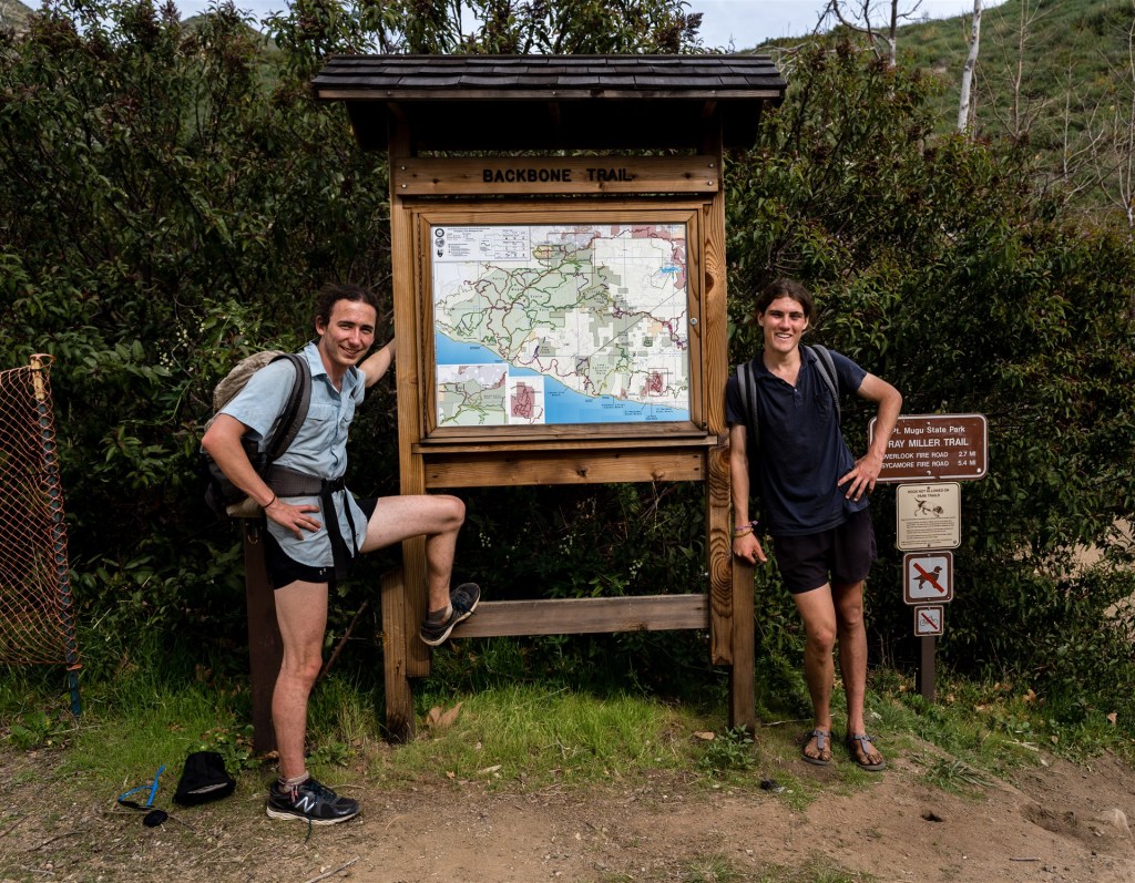 The night before I started the trail, I was in Berkeley, California. Because of flygkskam and my love of buses, I took the night bus from Berkeley to Burbank. My friend Matt picked me up. After cooking up some delicious gnocchi in the back of his beautifully built out 1999 Toyota Sienna while watching the sunrise over Los Angeles. After sitting in traffic for an hour, we arrived at the start of the backbone trail. I do not think overnight parking is allowed at Will Rogers State Park. We parked Matt’s trusty Sienna in front of a massive 10 million dollar house in the Pacific Palisades. Online sources informed me that parking was legal here for up to 7 days. After locking the car to protect it from the seedy neighborhood, we were off.