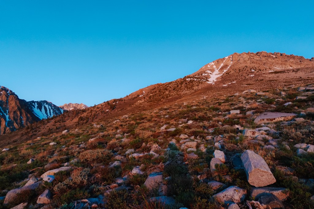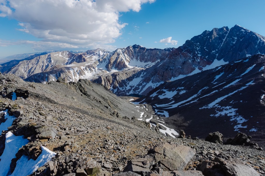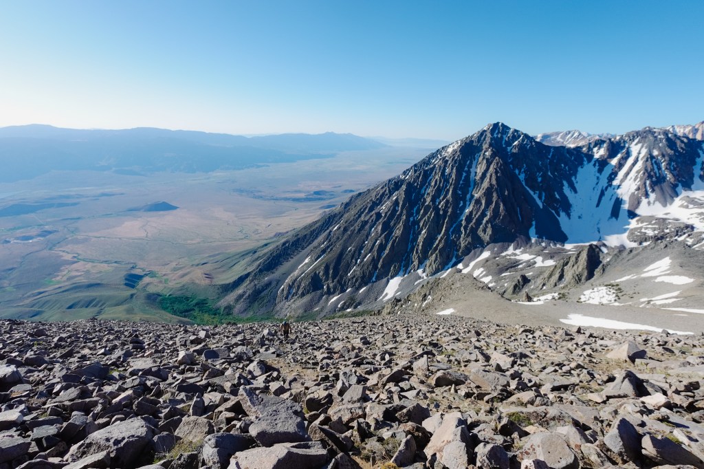 I set a fast but steady pace up the talus and three hours in we had climbed 5,000 feet. I checked in with Caleb to see how he was doing. Given how our last outing together went, altitude was our biggest concern for him. I had been sleeping high in the mountains on and off for the last few weeks so I had a bit of a leg up on that front. Caleb had been sleeping down in Bishop all winter, working late shifts at the nursing home. He said he was starting to feel the effects of altitude but it was manageable, which concerned me greatly. I suggested slowing the pace down a bit since we were ahead of schedule and he gratefully agreed.
