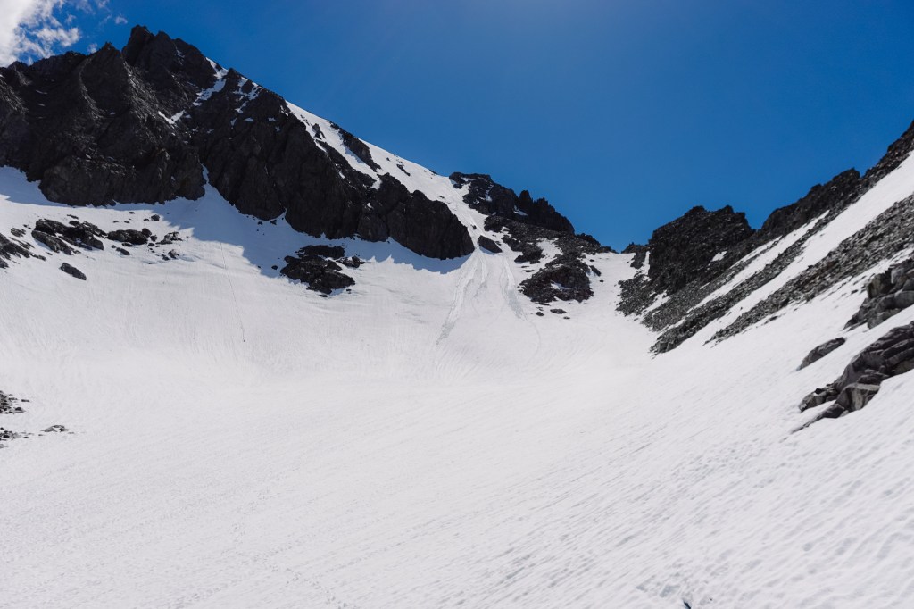 It was almost 3pm now and I put everything back in my backpack to get ready for the glissade down Red Lakes Pass. The chute was very steep but also very soft so I was not worried about being able to slow myself down on the glissade.