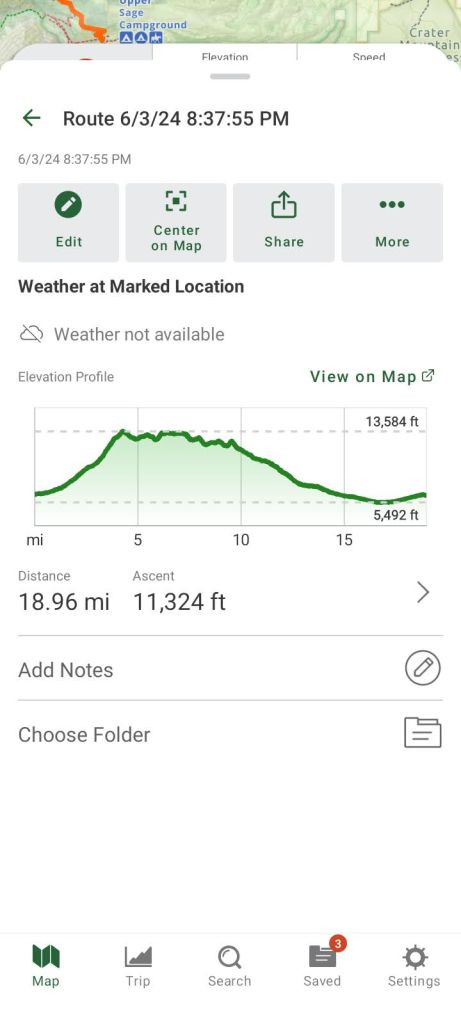 I let Caleb get ahead a bit and considered my options. Of course, I would offer to accompany Caleb down the mountain, but it seemed like he was in good enough shape and likely decline my offer. I definitely felt a little less sure about the linkup knowing I would be alone on the trickiest section. Then there was the matter of my overnight gear and bear can, which was in his car. We would work out logistics at the saddle.