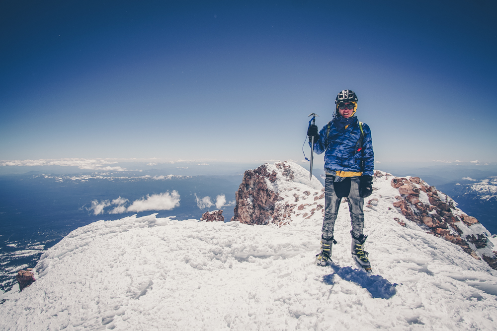 We woke up at around 7am and saw a lot of people higher in Avalanche Gulch turning around due to the wind. We met a guide and her client who had turned around when the client was in tears because of the high wind. We debated turning back but ultimately decided to give the summit a go. Luckily as the sun rose the winds died down slightly. Whenever a gust came we dug our ice axes into the snow and held on tight.