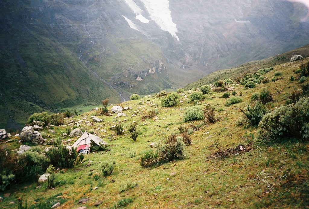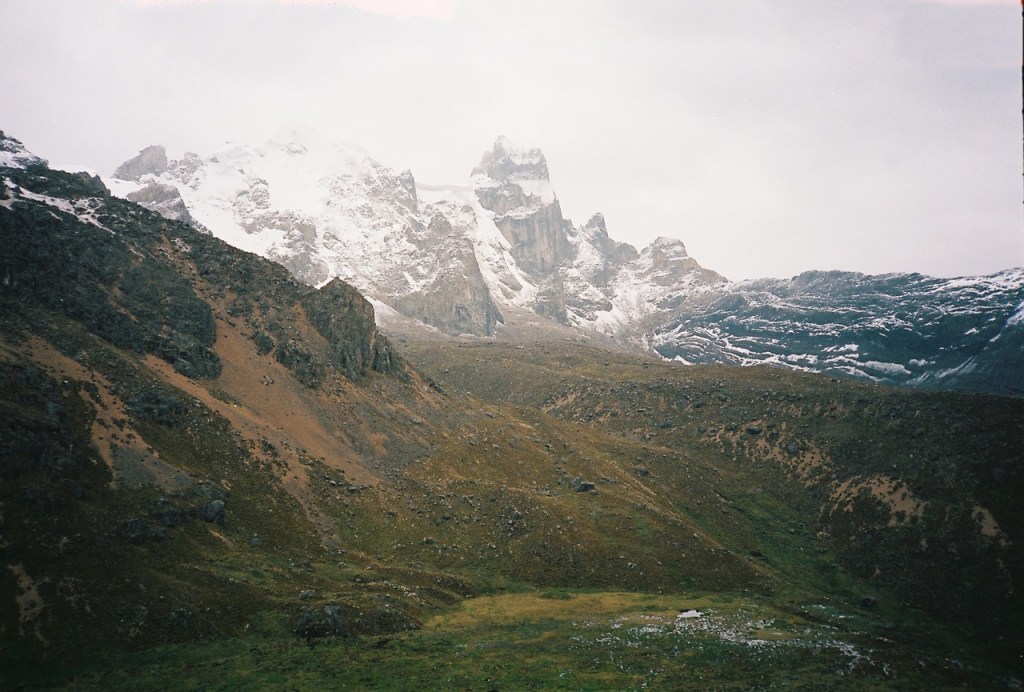 As the sun set that evening I got an incredible view of the 21,768′ Yerupaja, perhaps the highest mountain I will ever walk close to. While I walked around the whole mountain, this was perhaps the only clear view I would get.