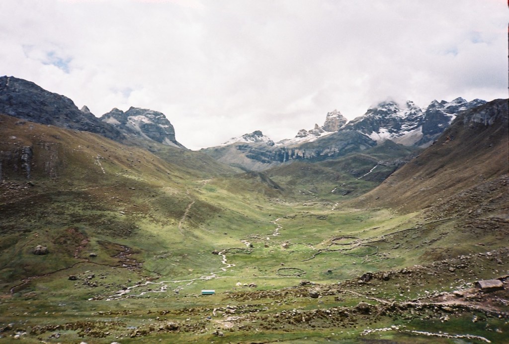 I left early the next morning, determined to get over the 16,500 foot pass before it started snowing. My lungs burned a little bit as I neared the top, but overall I had acclimated nicely from my previous week in northern Peru. Near the top there was about an inch or two of snow, but this quickly dissipated as I neared the top. I had aspirations of heading north over Paso San Antonio, but the snow up there scared me off. Instead I descended down to Huayllapa for the rest of the morning. By midday, it had started to pour, and I walked a very wet few hours to get to Huayllapa. I found a hostel there for around $5usd and stayed there for the night, sleeping soundly as the rain splattered all night on the metal roof.