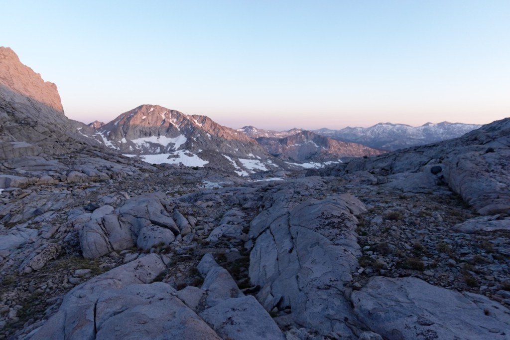 Another early summer trip, Bridget Noe and I headed out to Tuolumne Meadows. We planned a loop clockwise. After hiking a few miles in the first day, we setup camp. The second day featured a long sit by a lake for me while I waited for the two of them to climb Lyell and Macclure. This was very peaceful and regenerative for me. Somehow, Bridget and Noe were able to push on after a long day, and we tackled another pass. They both remarked that their minds were blank from the long day in the mountains. We setup camp at last light, at the base of Florence.