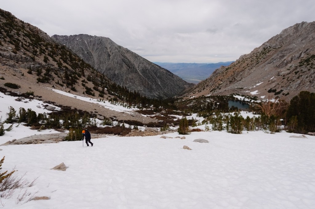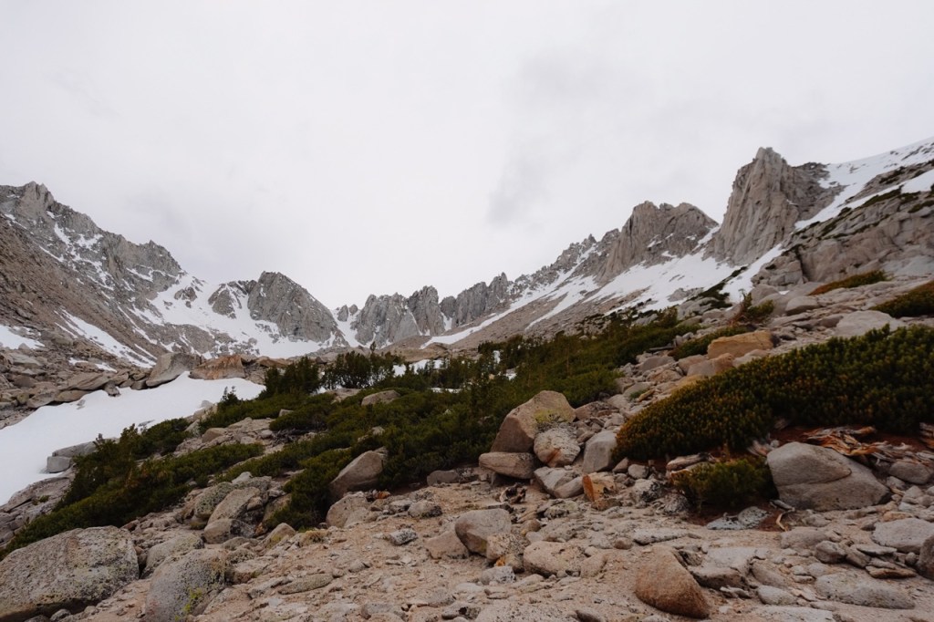 The following day, I climbed Kearsarge Peak, which was similarly uneventful, but just as beautiful. I had one more hike planned on the third day with Rick whom I had met in El Chalten. He was in his early seventies, but still chipping away at the SPS list. The clouds were uncharacteristically gray for a summer morning in the Sierra. We started hiking anyway, but were eventually turned around by the worsening weather.