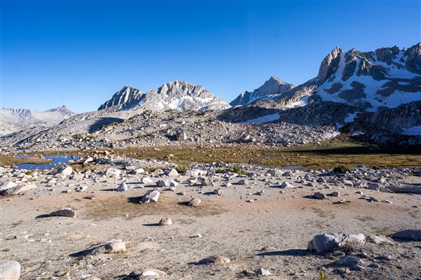 That next morning, I was once again heading up the Pine Creek Trail, albeit at a much slower pace. I was joined by my friends from the PCT Super Soaker and Fievel, and Fievel’s wife Mimi. It was great to catch up with the crew after not seeing them for so long. Our initial plan was to hike a 70 mile loop out of Pine Creek, however a storm looming in the forecast gave us pause. A romantic part of me wanted to fully embrace the change in seasons by finishing my last hike in the Sierra trudging through a few feet of snow. My more practical side knew that reality would be a sharper sword then it was in my romantic vision and that hiking in the snow would be a bad idea. I sent the group a final weather report the day before leaving, and we agreed we’d discuss the matter more on the trail. The two options were to complete the hike as planned, or to head back to civilization after two days to avoid the impending storm. As one should be in any group decision, I was amenable to either option.