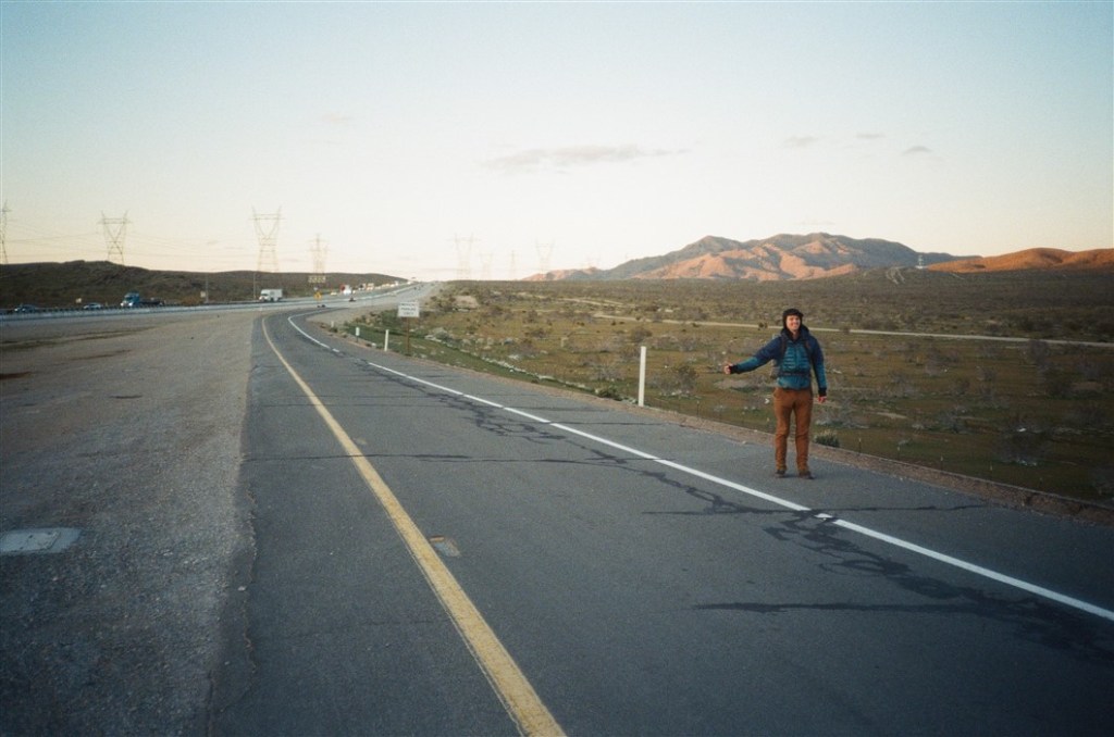 About an hour in, a police car drove by and said that hitchhiking was not allowed, and to leave. His request seemed almost halfhearted though as he did not stop. We kept trying, fearing he might come back at any minute. Luckily he did not return. 2.5 hours later, we got our first ride, ten miles up the road to Rialto. Andres was a college student, stoked on life. He had hitchhiked up to Big Bear the previous summer and said it was way more enjoyable than driving. He was stoked to hear about our big plan of hitchhiking to NYC. We got a bit lost in conversation with him, so we eventually ended up off I-15 and on I-210. Woops
