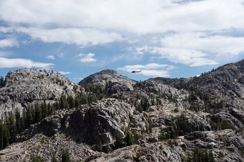 The forecaster’s wise words rang like thunder through my head that whole weekend. I had four days set aside, but I knew only the first few hours of each day might be usable for hiking peaks. I woke up early on that first day, determined to hike Paiute before things got too crazy weatherwise. For some reason I balked at the beta and I decided I wanted to forge my own route to the summit. I do not recall why such hubris overcame me. Meanwhile, a helicopter seemed to be conducting a search nearby. I climbed steadily, eventually finding myself above the helicopter.
