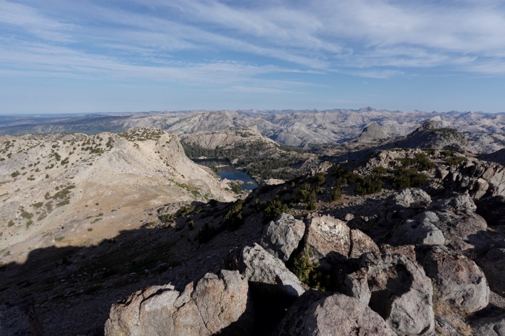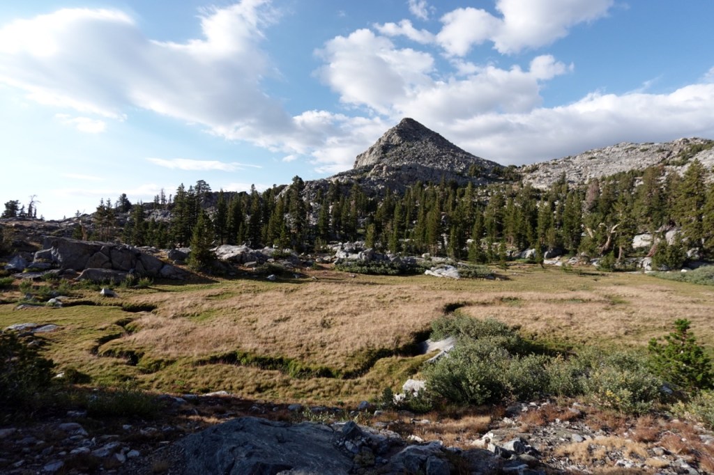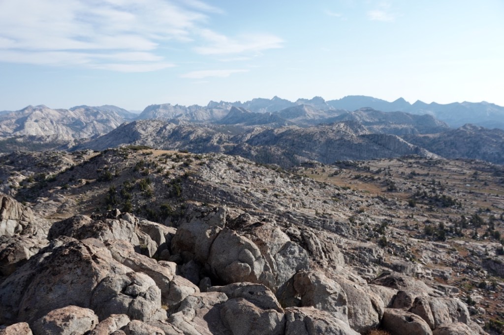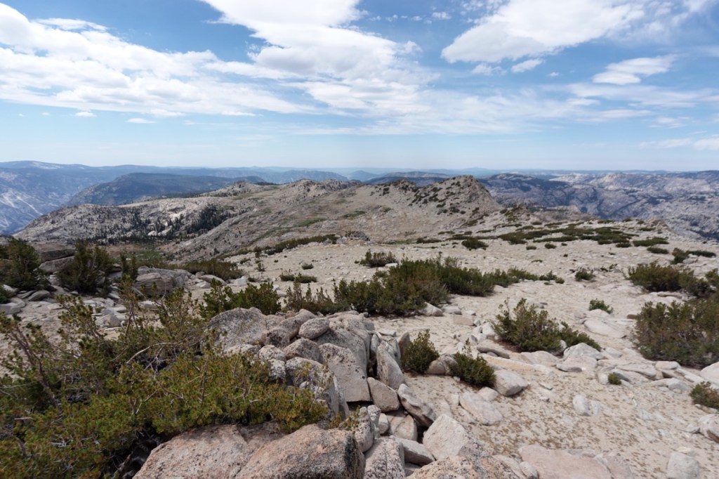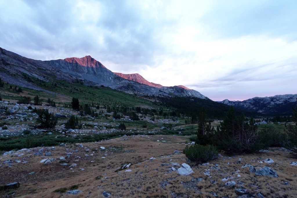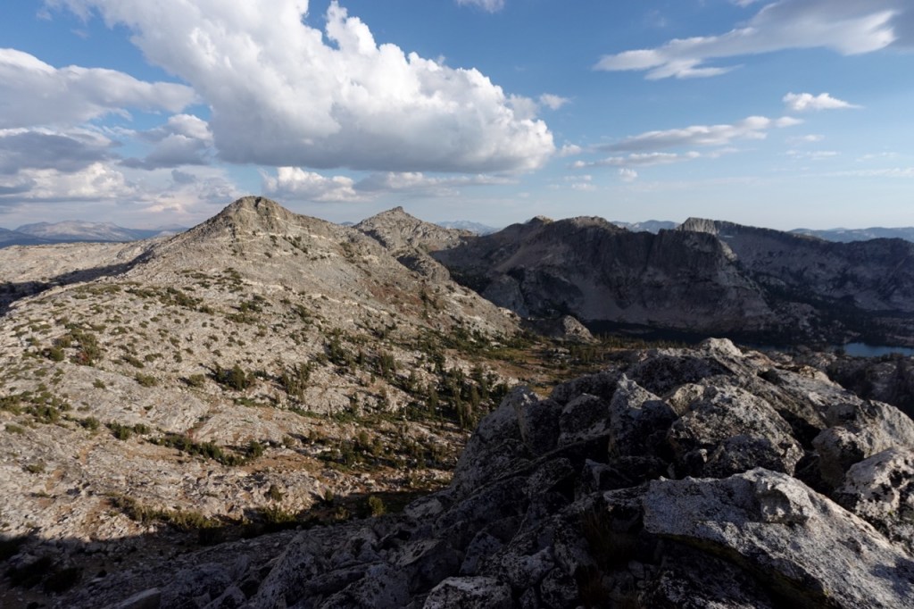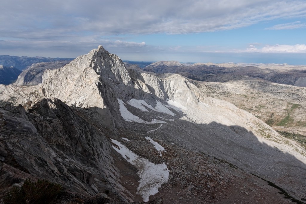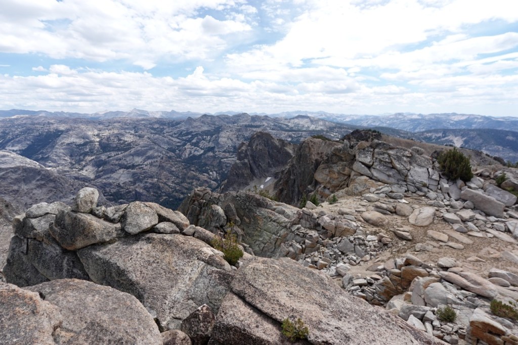 I awoke at dawn the next morning, and found the sky already filling up with clouds. I was glad that I had pushed hard the day before, and only had one peak to do this morning. I headed up Petit, one of the more remote SPS peaks in the area. The peak has incredible views of the entire upper Tuolumne watershed. By the time I returned to camp, the storm continued to brew. I packed up quickly and returned to the PCT.