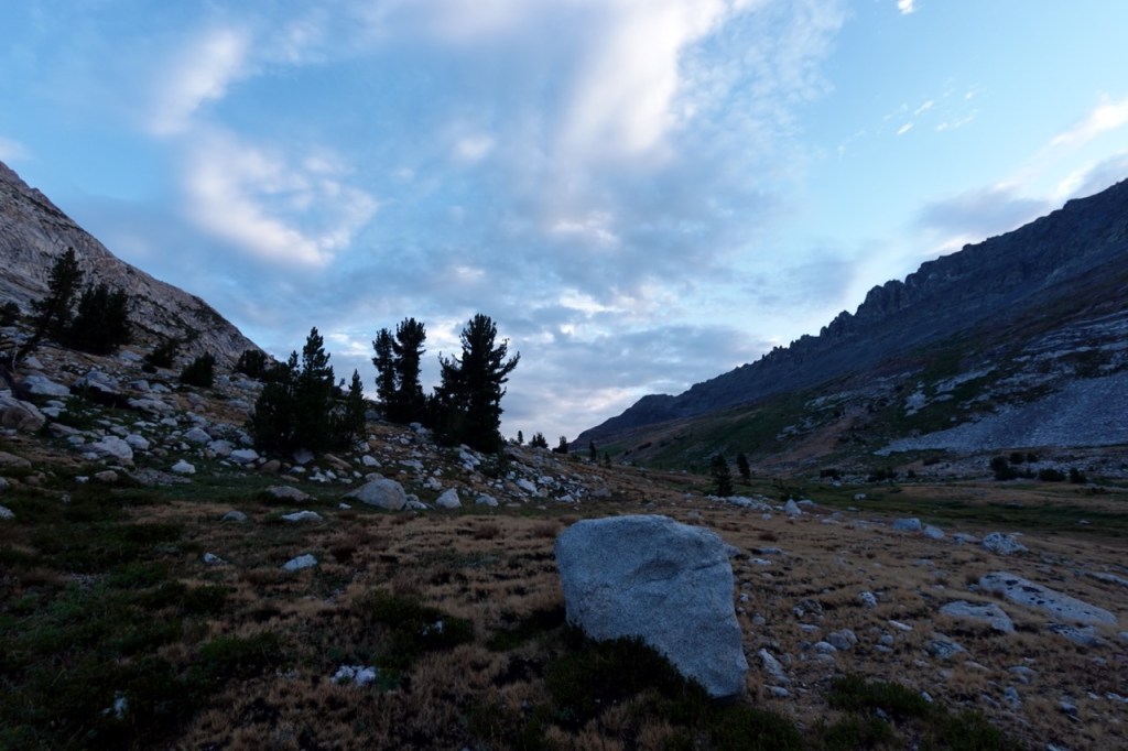 As I descended down, the clouds continued to darken the sky. I met two dayhikers some 3,000 feet below Matterhorn, and all but told them to turn around. Their eyes seemed to be playing tricks on them, and they told me the clouds were clearing. I bid them well, and told them to keep their eyes on the sky.