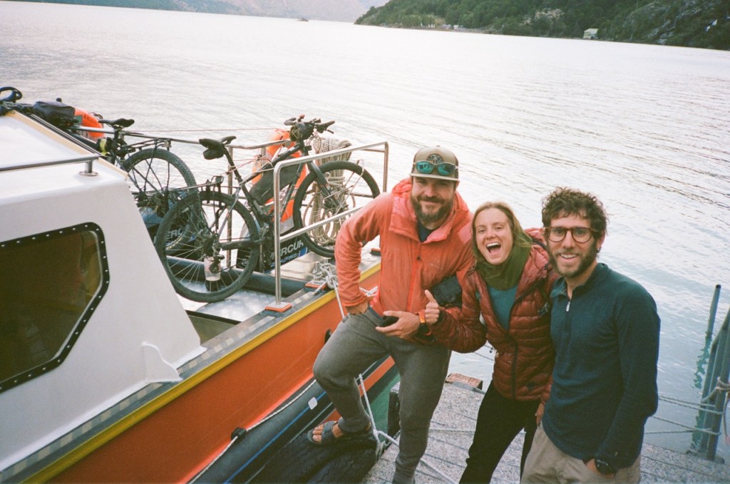 I spent a few days waiting for the ferry, over the course of which i met a lot of interesting travelers and bikers. Two of the bikers were even biking all the way from Alaska. Finally one evening, the captain signaled the winds had died down and it was time to go. After a harrowing two hour boat ride across the turbulent lake, we arrived at night on the other side. The whole group from the boat camped at a campsite, and I set off early the next morning. I arrived to the Chilean exit customs right as it opened, and quickly passed a few bikers on the climb up to the pass. I crossed the very unique border and hiked into Argentina. I was lucky to have a bluebird day, and was treated to incredible views of Fitz Roy, piercing the sky in the distance.