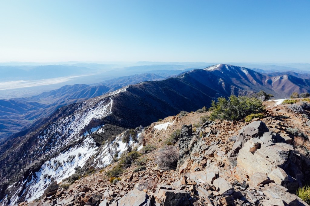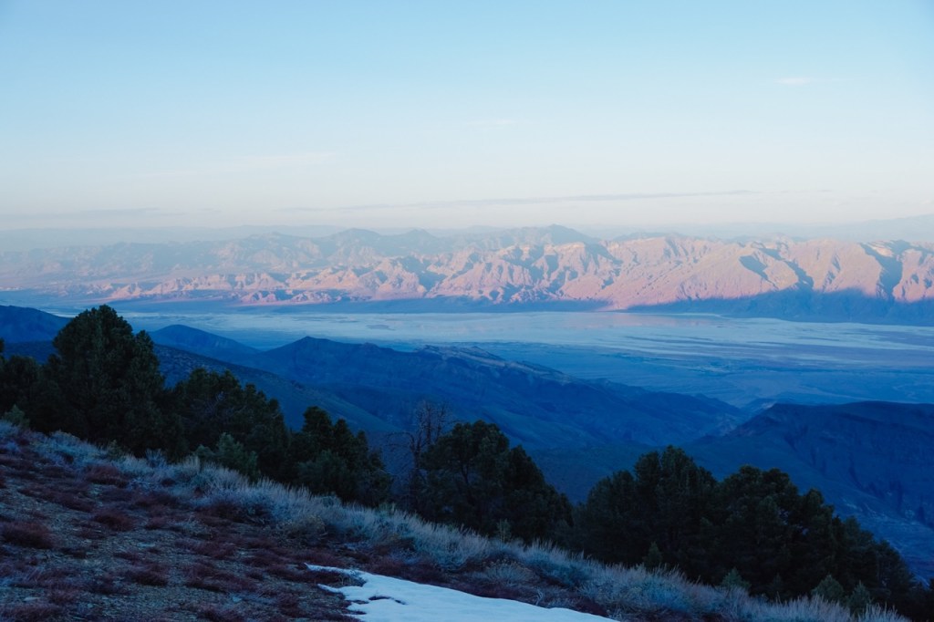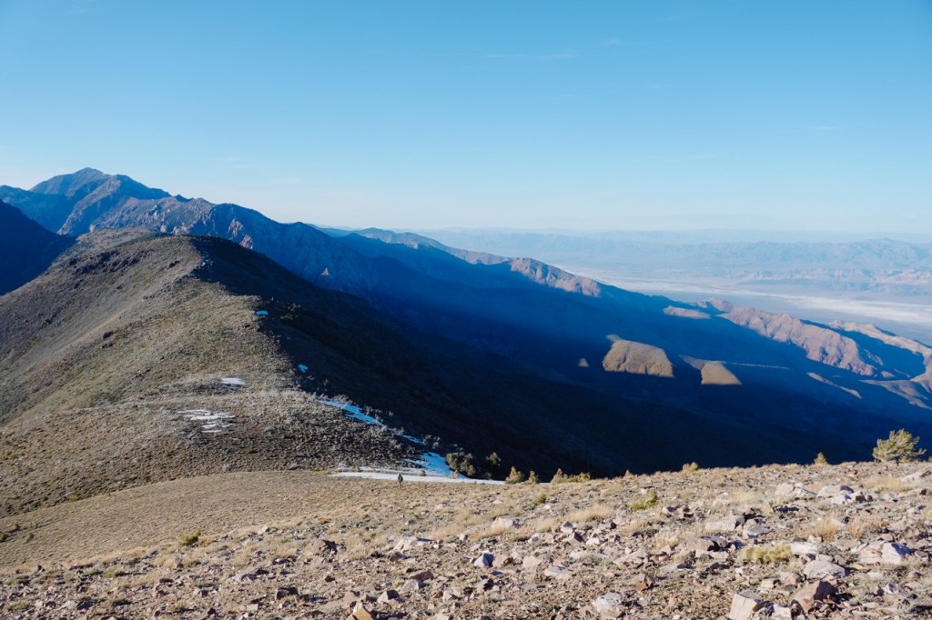 We camped that night high in the Panamints, just south of Sentinel Peak and were treated to clear weather and a majestic sunrise and sunset. The decision point was fast approaching. We waffled back and forth between bailing at Panamint Pass or attempting the full traverse. Matt had very little food left. We worried about the snow on the north side of Telescope Peak, so ultimately we decided to head down the fresh vegetable route to Hungry Bills Ranch. We both agreed to head back to the car, leave Death Valley and head for cooler temperatures in the Southern Sierra.