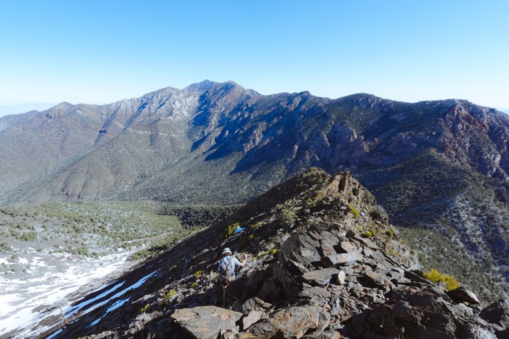 We were planning to attempt a full traverse of the Panamints, but the weather was forecasted to remain unstable for the next day, so we decided to start in the Owlsheads and hike north. We were not sure if there would be too much snow around Telescope Peak to do a full traverse, so we planned to bail at Panamint Pass and make it a loop if need be.
