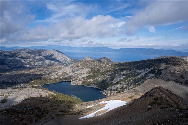 I needed to rest up because I still had three peaks planned before my train left Reno in a few days time. The next day John had to go to work, but I walked out the front door and headed for Mt. Tallac. It was a lovely morning amongst newly yellow Aspens and I was treated to beautiful panoramic views. Mt. Tallac is a truly spectacular peak, and the 360 view of Lake Tahoe and the surrounding mountains is a real treat. I feel as though it should be the 16th emblem peak. I traversed along the ridge and soon found myself on Dick’s Peak around midday. Two SPS peaks, what a great start to the day I thought as I enjoyed the views of Lake Aloha and the rest of Desolation Wilderness. I walked out to Echo Bay, and before I knew it I found the hordes of tourists that signified I was fast approaching a paved road.