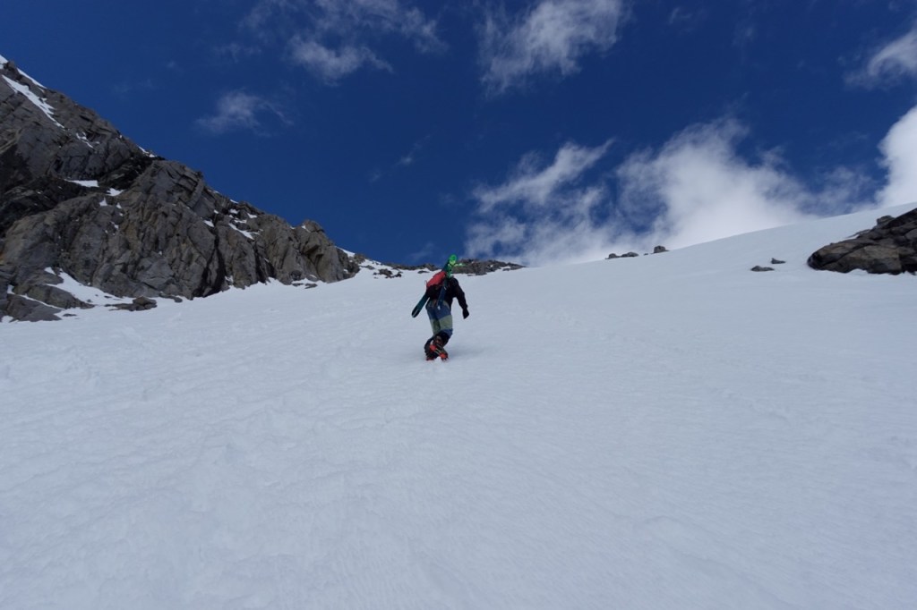 Some miracle clouds came and cooled things off, saving the snow for a few more hours. We were all exhausted, but we pushed towards the summit. At one point, the terrain became steep so we had to transition to boots.